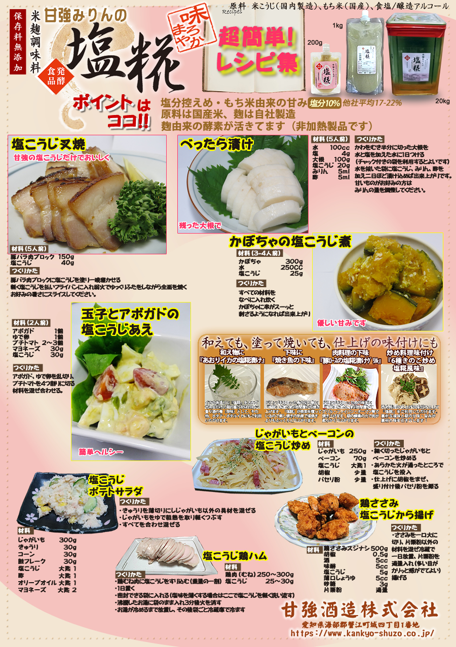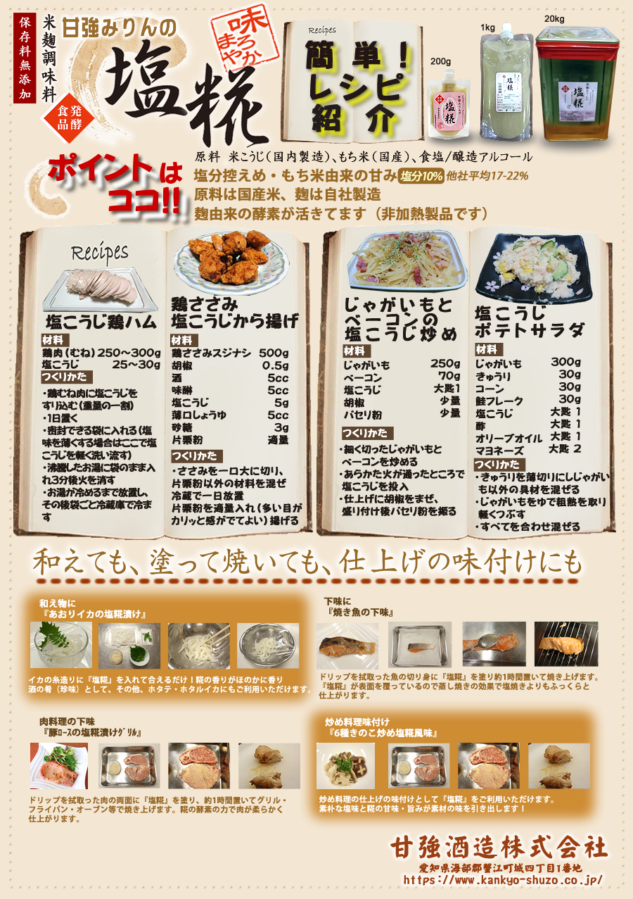 そのため素材を塩糀に漬け込むことで、素材が柔らかく仕上がります。 |